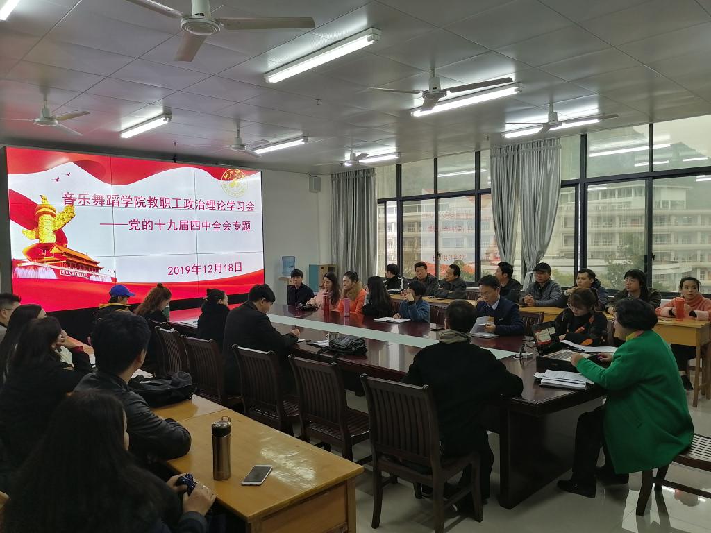12月18日下午,必赢3003no1线路检测中心在艺术楼402会议室召开关于十九届四中全会的政治理论学习会议。会议由学院党总支部书记魏菱主持,全体教职工参加会议。