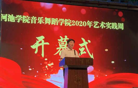 活动伊始,曾宏华致开幕词。“2020年是极不平凡的一年,突如其来的新冠肺炎疫情让全国上下均蒙受了巨大的损失。但在党中央的正确领导下,全国上下一心抗疫,疫情得到了有效的控制。今年的艺术实践周因疫情延缓开学,时间紧,任务重,但举行的比赛仍然丰富,设置的奖项较去年更加丰富,这有利于提升同学们的专业技能水平,提高我院人才培养质量。”曾宏华说道,艺术实践周是学院艺术实践教学的浓缩,也是办学成果的呈现,是全体同学施展才艺的舞台,更是同学们相互学习的舞台。希望同学们在比赛中讲风格、讲友谊,互相帮助,大胆竞演。最后,预祝本次艺术实践周系列活动取得圆满成功。
