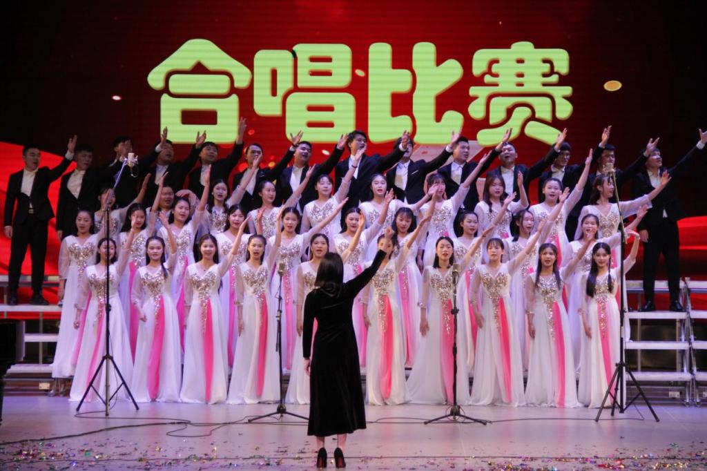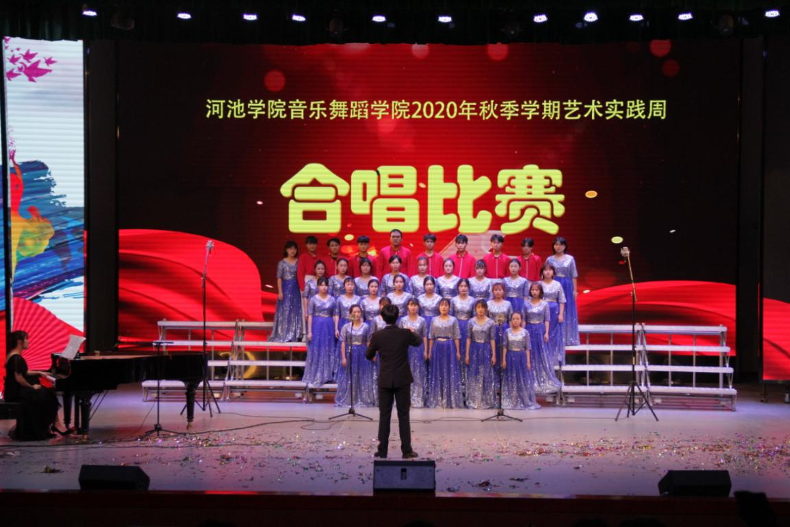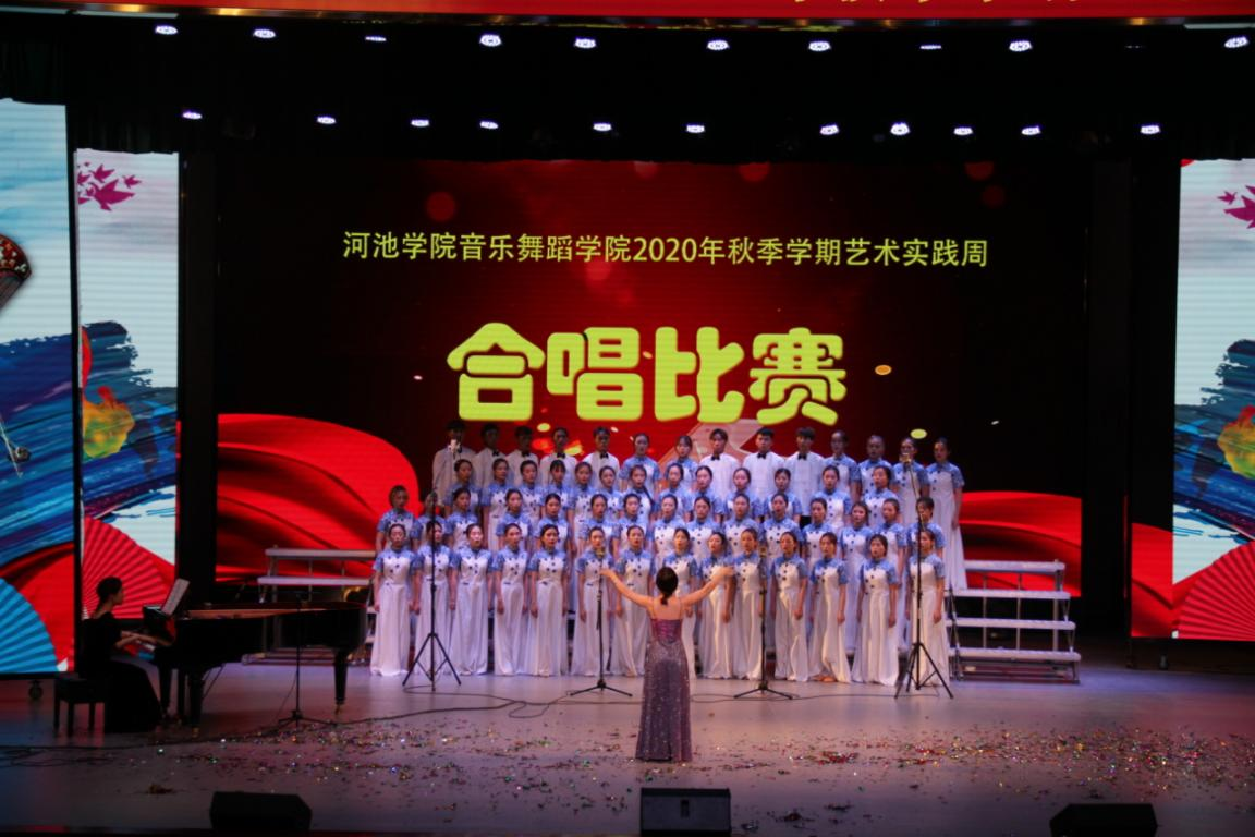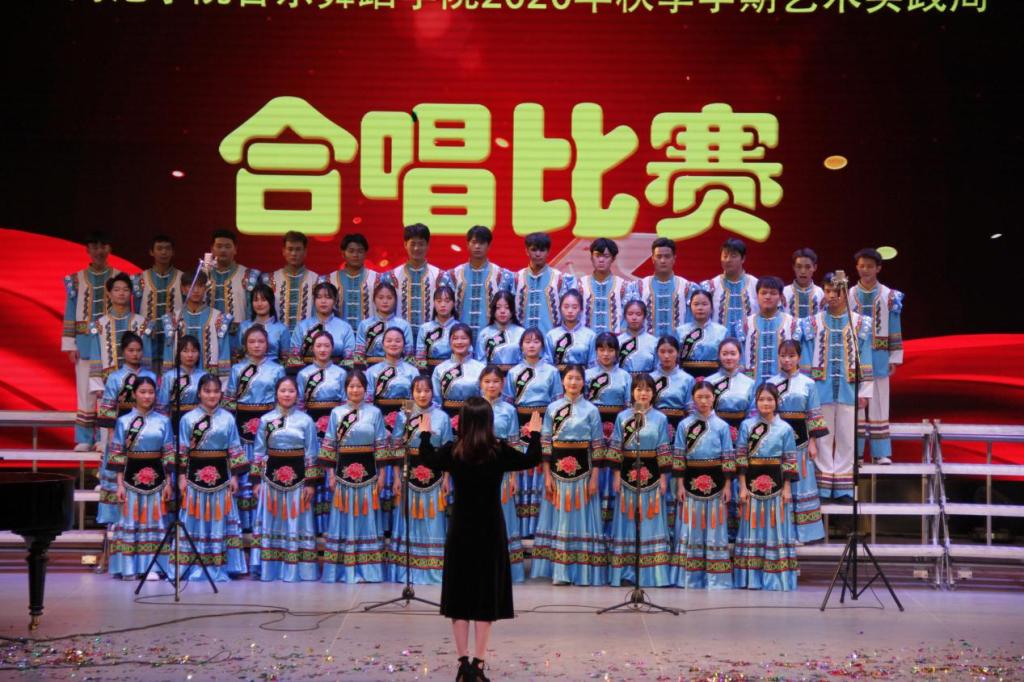合唱比赛现场,钢琴优美的旋律与歌声交相辉映,流行与经典完美融合。各班级合唱曲目唱腔唱法收放自如,时而高亢,时而舒缓,各声部交错,层次感十足,展现出别样的艺术风采。最终2017级音乐表演班、2017级音乐学1班、2018级音乐表演班分别获得合唱比赛专业组第一名、第二名和第三名,2019级舞蹈学、2020级舞蹈学、2018级舞蹈学分别获得合唱比赛业余组前三名。通过比赛让同学们感知音乐的旋律美、和声美,提高了他们的艺术审美和专业技巧的表达能力,取得了良好的效果。