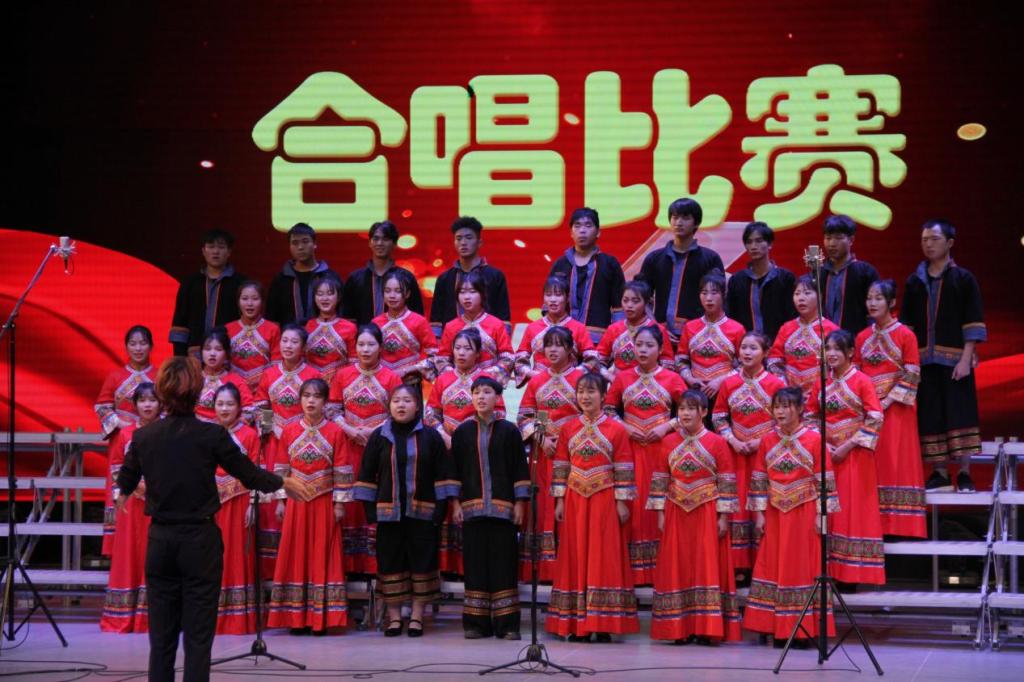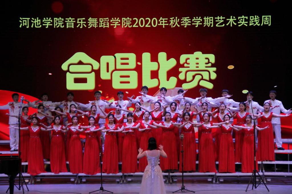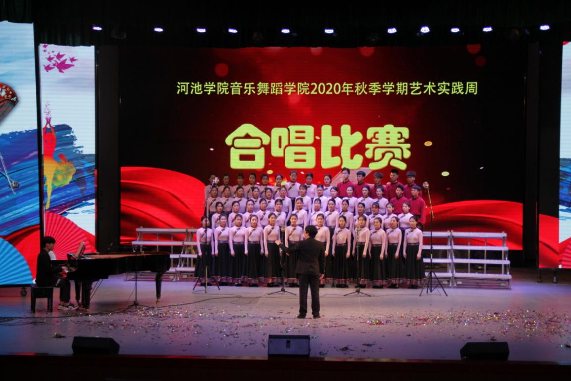 晚上20时许,本次艺术实践周的第一场比赛暨班级合唱预决赛正式开始。合唱比赛分为专业组和业余组,在2019级舞蹈学班合唱的《贝加尔湖畔》的歌声中拉开帷幕。在随后比赛当中,各班共带来《故乡的小路》、《壮族敬酒歌》、《美丽的草原我的家》、《春天的故事》、《广西尼的呀》、《在灿烂阳光下》、《白莲盘歌》、《香格里拉》、《三姐的歌万人和》、《我爱你,中国》、《多谢了》、《壮锦献给毛主席》等24个合唱曲目。
