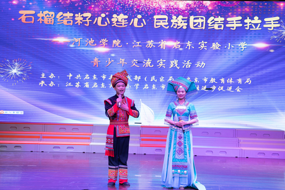 12月11日,应启东市统战部及启东市实验小学邀请,我院师生一行参加了河池学院、江苏省启东实验小学的“石榴结籽心连心,民族团结手拉手”青少年交流实践活动,交流活动上罗柳青老师演唱《广西呢的呀》,潘善海老师演唱《壮族敬酒歌》,并现场教唱广西山歌《只有山歌敬亲人》。通过此次活动让启东市实验小学小学生们接受到浓厚的艺术熏陶,加强了我校与启东市基层单位之间的交流。(作者:潘善海 摄影:罗柳青 校对:张砾文 审核:周佐霖)
