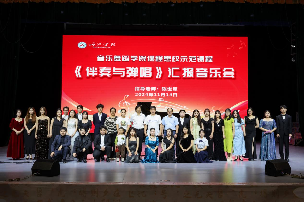 2024年11月14日晚,我院在艺术楼表演厅成功举办了课程思政示范课程《伴奏与弹唱》汇报音乐会。此次音乐会由陈世军副教授指导,学院领导及部分师生莅临现场,共同欣赏这场充满艺术与思政融合的精彩演出。
