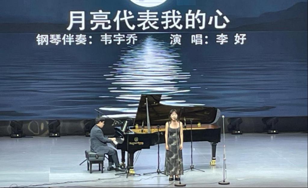 此次音乐会由音乐教育、音乐学专业的25名同学共同参与,他们以饱满的热情和精湛的技艺,演绎了一首首经典曲目,为观众带来了一场视听盛宴。音乐会以《我爱你,中国》深情开场,随后《长江之歌》《可爱的一朵玫瑰花》《月亮代表我的心》等曲目陆续登场,既有激昂澎湃的家国情怀之作,也有温婉柔美的经典民歌和流行佳作,展现了学生们对音乐的深刻理解与动人诠释。音乐会在全体表演人员的大合唱《同一首歌》中圆满落下帷幕,为观众留下了深刻印象。