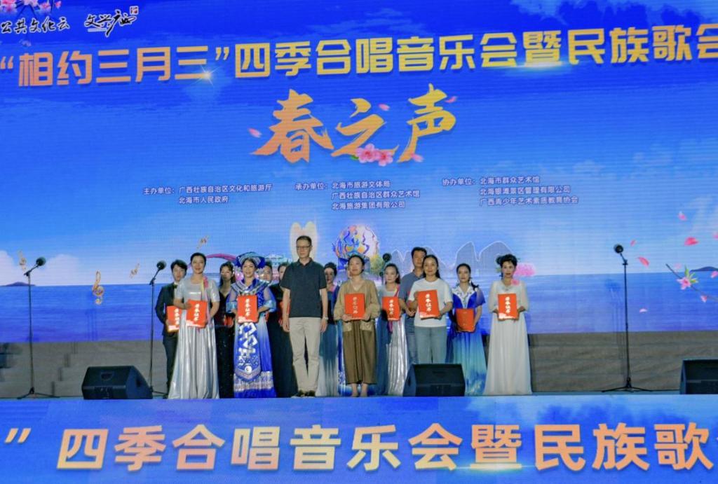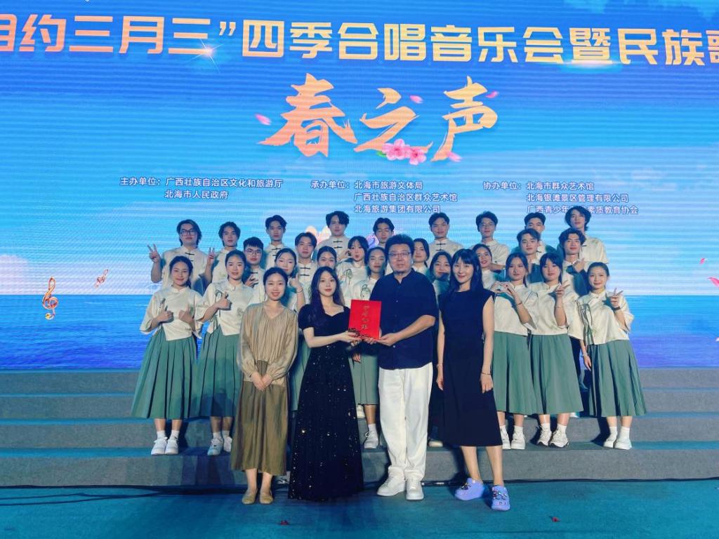 4月20日晚,由广西壮族自治区文化和旅游厅、北海市人民政府主办的“相约三月三”四季合唱音乐会暨民族歌会在北海银滩“潮”雕广场盛大举行。来自广西、浙江等地的合唱代表队参加了本次比赛,其中大部分代表队是由各地区群众艺术馆组建的职业合唱团,也有来自宁波大学和北海艺术设计学院附属学校等学校的学生合唱团。由我校必赢3003no1线路检测中心2023级学生组成的合唱团赛出水平、赛出风格,最终荣获二等奖。