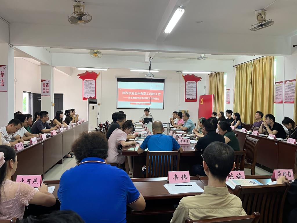 曾宏华首先介绍了本学期新进的3名教师,并对他们的加入表示热烈的欢迎。随后就暑期工作进行了总结汇报,并就毕业生就业工作作了专题发言,他指出,就业工作关乎学院发展,需要高度重视,必须全员参与,同时代表学院对暑假期间坚守工作岗位、付出辛勤劳动的教职工表达了由衷感谢。紧接他对新学期的课程教学安排、新生接待、毕业生毕业论文设计、艺术实践周、教师音乐会、科研工作和校地合作等重点工作做了具体安排。最后曾宏华传达了学校主要领导近期的相关讲话精神,并结合学院实际,认真领会学习学校领导讲话精神,立足学院发展,对全体教职员工提出了具体要求:坚定立场讲政治、服从安排讲规矩、平衡利益讲奉献,希望全体教职工在新学期锚定目标,为推进学院高质量发展作出更大贡献。