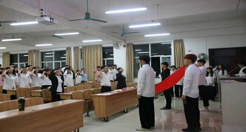 入团仪式在雄壮的国歌声中拉开帷幕。老团员韦姿驿同学领读入团宣言,所有新团员佩戴团徽,面对鲜艳的团旗,以最宏亮的声音进行庄严宣誓,在高亢激昂的宣誓声,饱含着新一届团员的激情与热血。随后,新老团员代表轮流上台发言,他们表示作为一名共青团员应勇于担当时代重任,以实际行动书写火热青春,不负青春韶华,发挥“领头羊”作用。