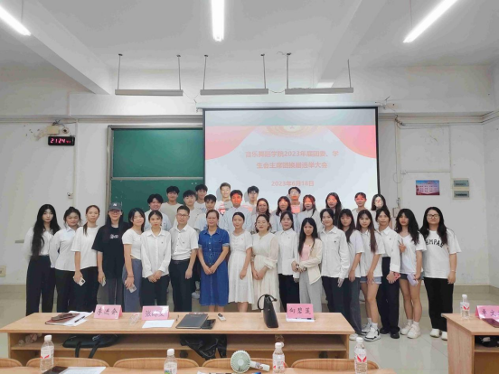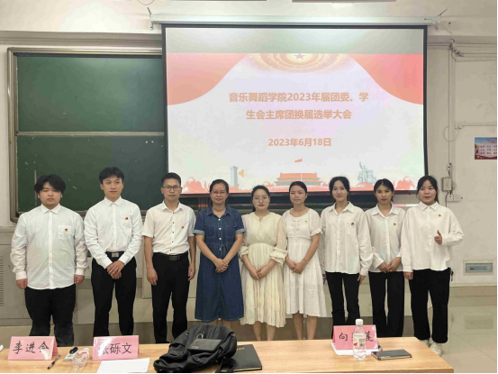 伴随着中华人民共和国国歌,本次大会拉开了序幕。首先,由学院上一届学生会主席毛青春对上一届的团委、学生会工作做了简要的回顾与总结。随后,参选2023届团委、学生会学生干部逐一进行竞选演说,经过无记名投票,最终选出了新一届学院团委、学生会组成人员。其后,学院团委书记张砾文发表总结性讲话,在肯定了上一届团委、学生会工作的同时并对新一届团委、学生会主席团的工作提出了期望和鼓励。最后,本次团委、学生会学生干部换届大会在庄严的国歌声中圆满结束。