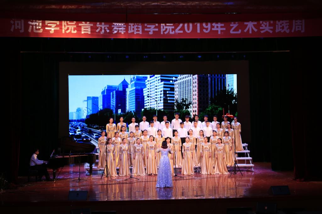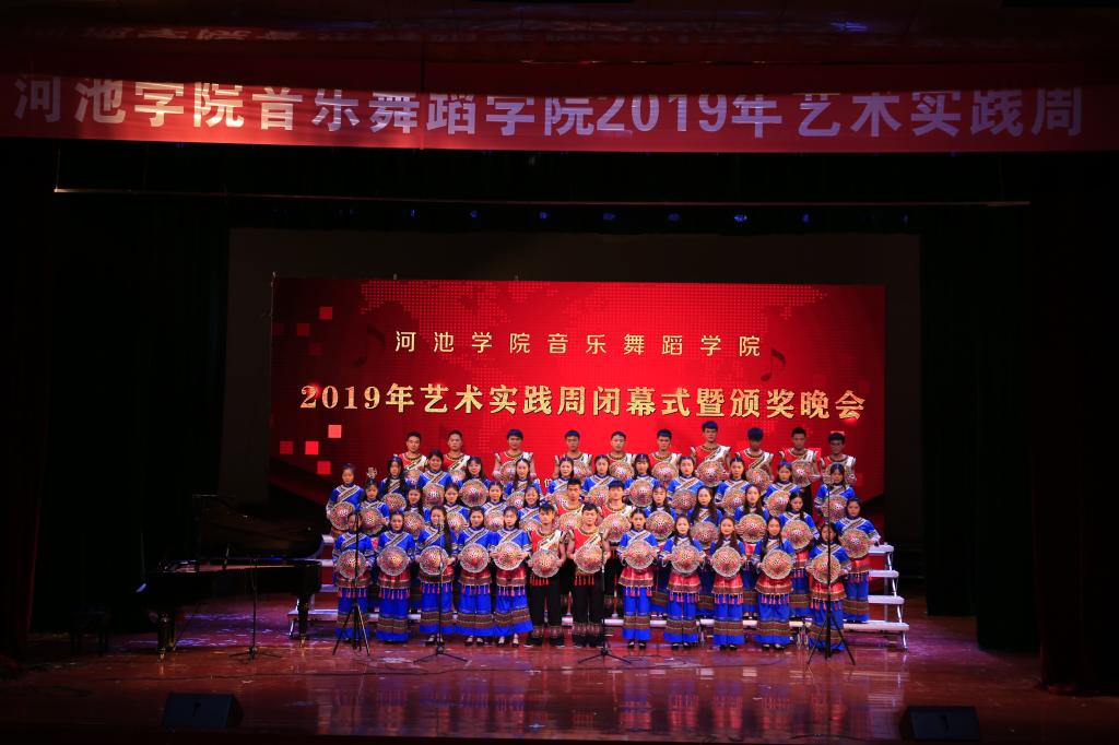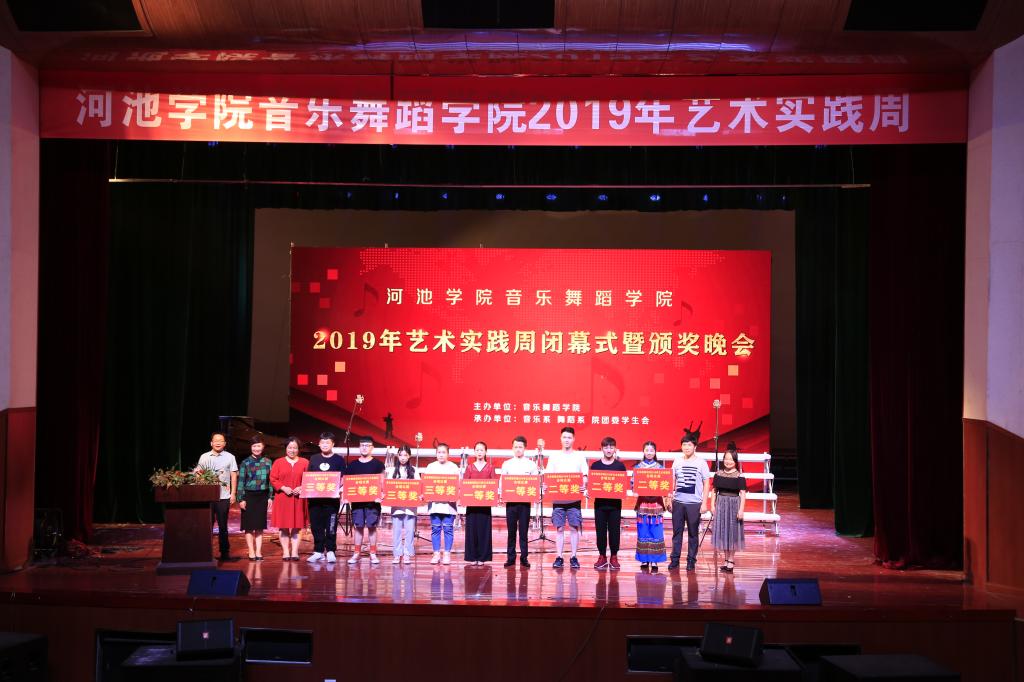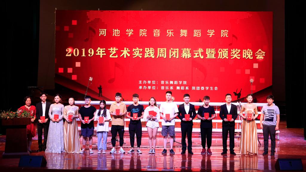晚会为在本届艺术实践周活动中的获奖学生进行颁奖,共颁发了合唱,声乐类,舞蹈类,乐理类,经典诗文诵读,即兴伴奏,戏剧小品等七个大类十余个奖项。