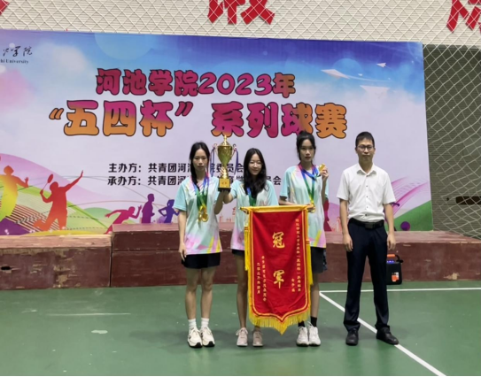 5月14日下午,我院学生代表队参加了在西区体育馆举行的河池学院2023年“五四杯”乒乓球赛。此次比赛共有13个参赛队伍,经过我院师生共同努力,我院代表队荣获女子组冠军。
