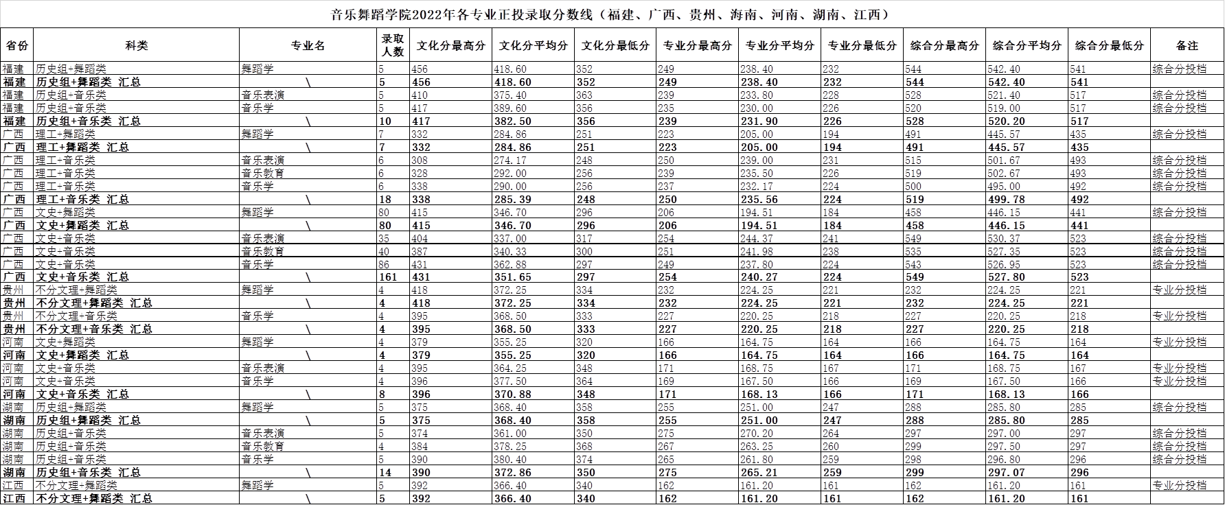 20240516必赢3003no1线路检测中心2022年各专业录取分数,含加分(福建、广西、贵州、海南、河南、湖南、江西)